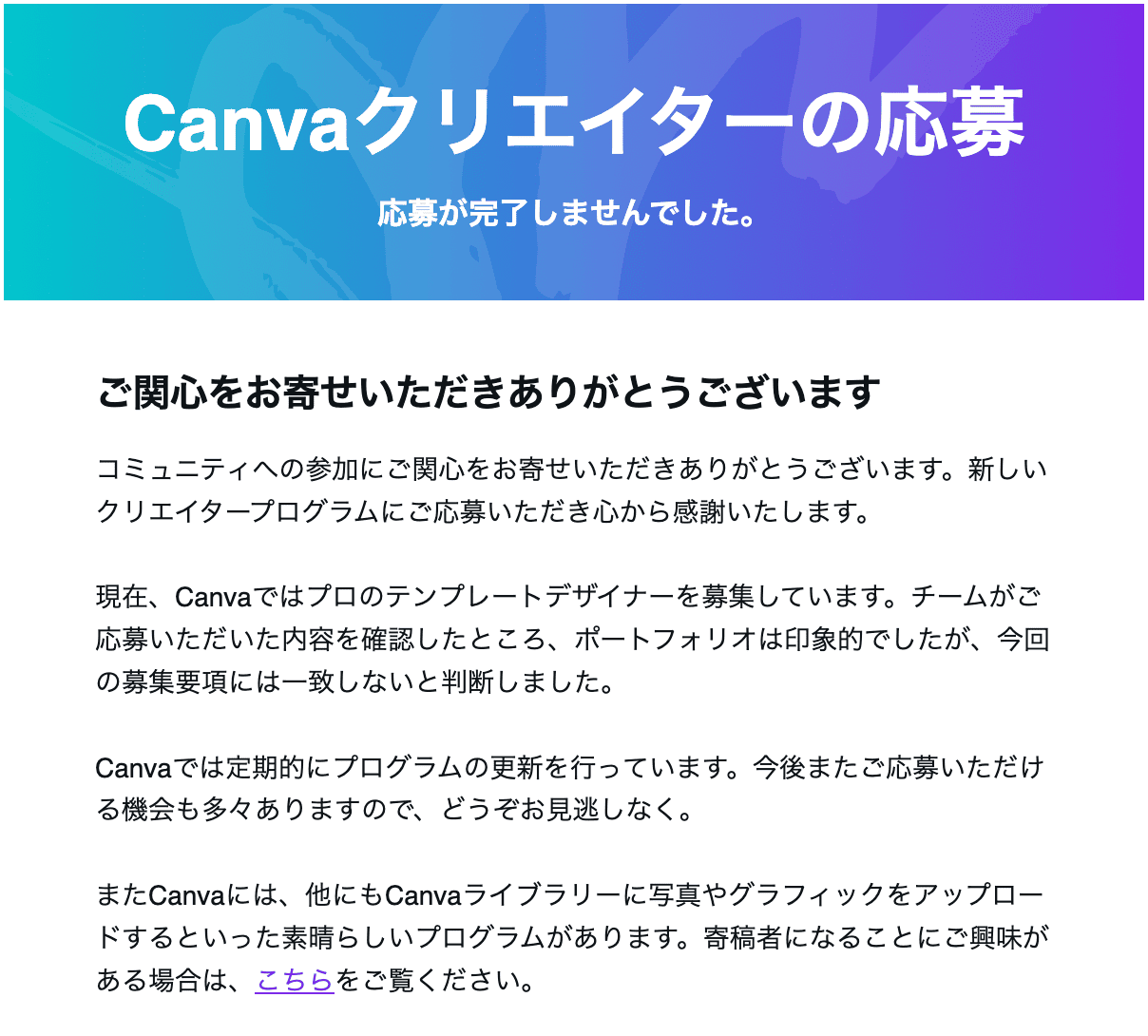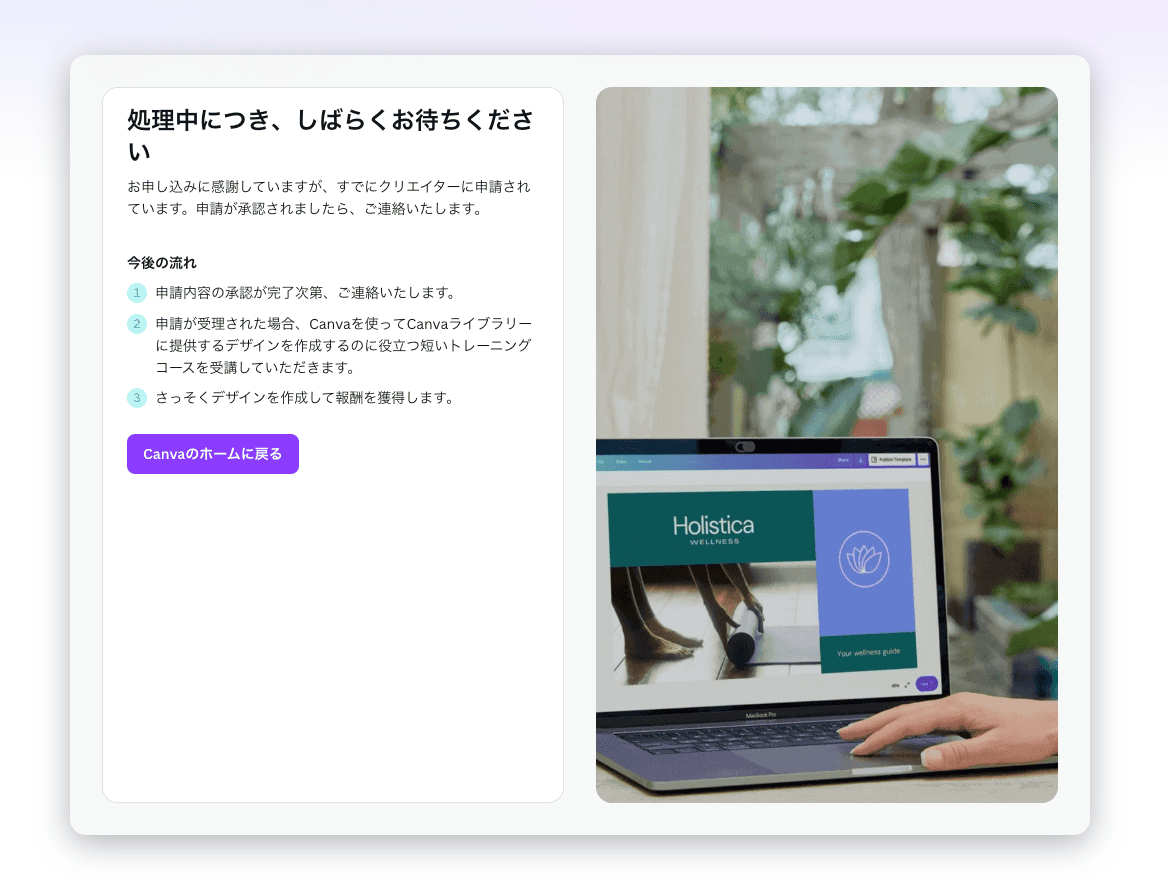 応募が完了すると、Canva側でポートフォリオ審査が行われます。